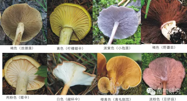 我們往往根據蘑菇的菌蓋顏色或菌褶顏色對蘑菇起名字,如白蘑菇、黃蘑菇、紫蘑菇…
