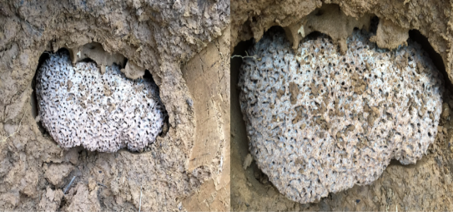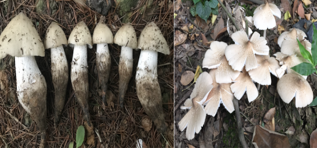 如果白蟻巢體上培養的是雞樅菌的菌絲體,當春天來臨、雷雨過后,蟻巢上方的土壤含水量增大,形成適當的溫差、濕差、氣壓差,巢體上就會形成原基,原基長高形成假根,假根穿過巢體上方的空間,進入巢體上方的土壤,土壤中含水量適宜,假根很快長出土面形成菌柄,菌柄頂端形成菌蓋。雨后空氣濕度大,適合菌柄和菌蓋的生長,在土面上就會突然長出大量雞樅菌的子實體。每年的5月至10月,只要我們不破壞蟻巢,不擾動、驚嚇白蟻,一個蟻巢可以連續出菇4至5批次。營養豐富的雞樅菌子實體為地面上的昆蟲以及人類提供了美味的食物。在一個很小的干重不到100克的蟻巢體上,就可采集到500克以上的鮮菇,這個出菇行為會大量消耗白蟻所需要的營養物質。