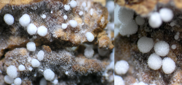 雞樅菌的菌絲體在白蟻巢體基質內部大量生長,分解各種有機物形成大量的菌絲體,然后在薄壁的巢體表面大量產生小白球狀的菌絲體,小白球的直徑長200微米至800微米,白蟻喜歡吃這些營養豐富的小白球,繁殖壯大成一個有數百萬居民的大群體。從白蟻的腸道中可以分離純化得到雞樅菌的純菌種。